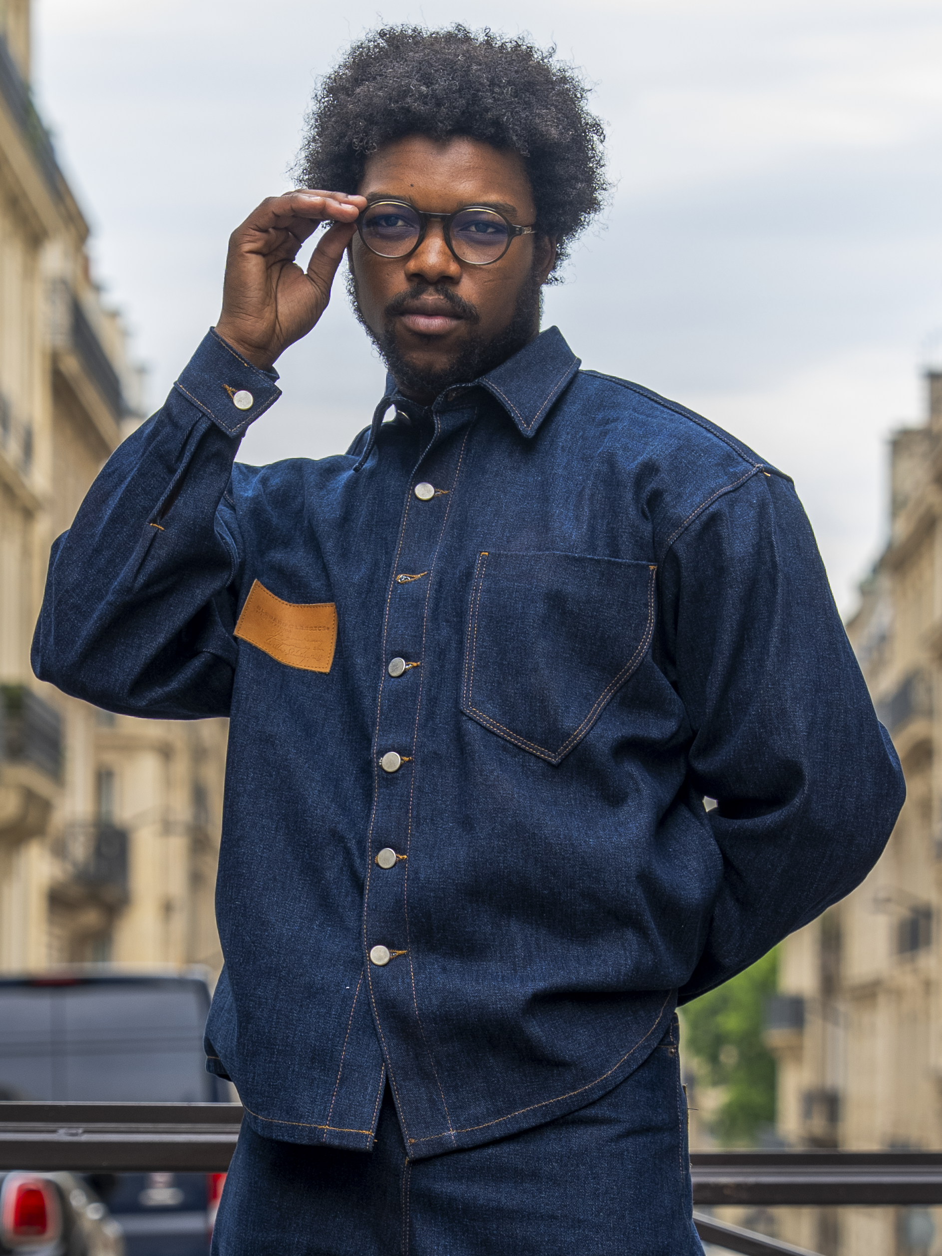 Sa coupe boxy oversize, droite et structurée, offre un tombé net et affirmé. Le denim rigide non lavé développera une patine naturelle avec le temps.
